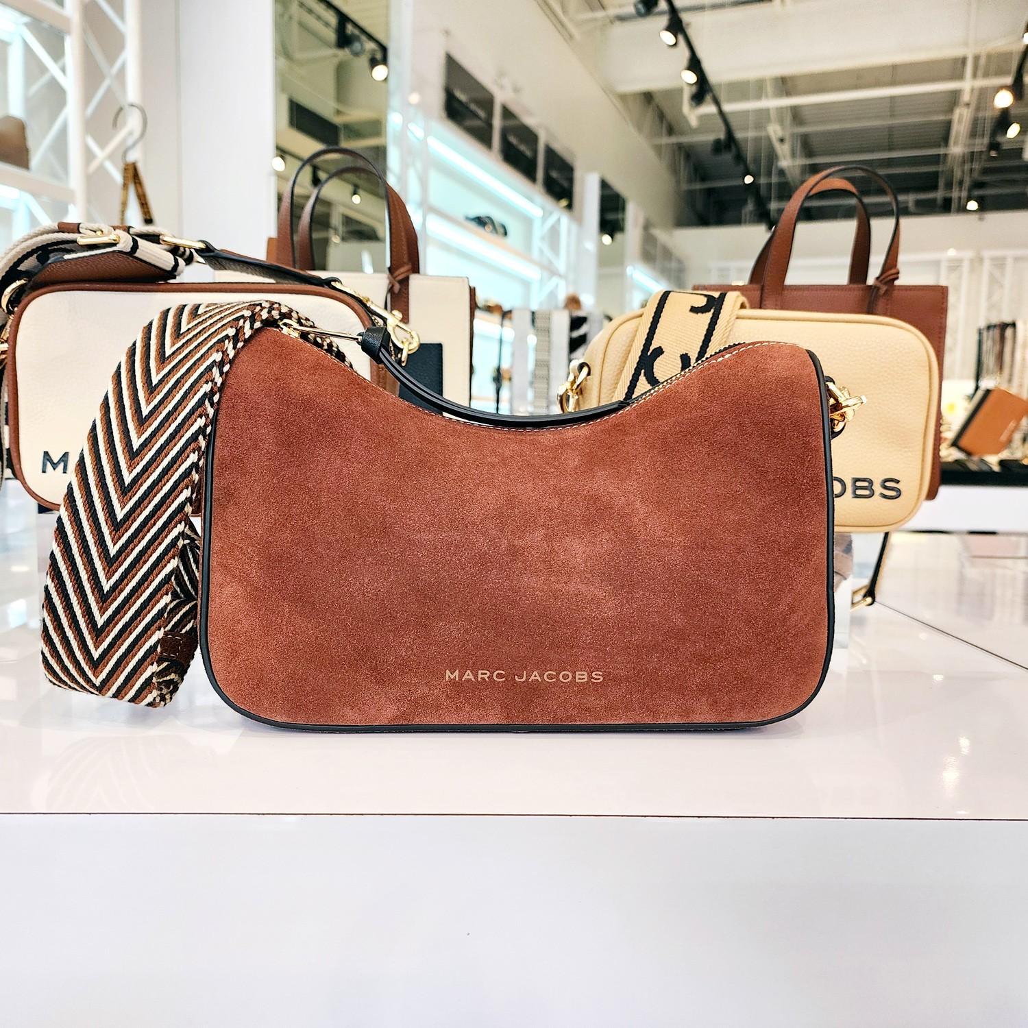 1 ITEM BRAND: Marc Jacobs COLLECTION: Drifter DESCRIPTION: Convertible Shoulder Bag STYLE NUMBER: 4F5HSH001H01 COLOR: Cognac RETAIL: $450 DETAIL & FITS MATERIAL: Suede, leather trim HARDWARE: Gold stainless, polish finished CLOSURE: Zipper STRAPS: 1st: detachable leather shoulder strap with 10" (25 cm) drop 2nd: detachable crossbody webbing strap (2" width) with leather shoulder guard drops 25" (63.5 cm), adjustable to shorter length EXTERIOR: Embossed logo, lock charm INTERIOR: Fabric lining, zipper pocket SIZE: Length: 11" (28 cm) Height: 6" (15 cm) Depth: 4" (10 cm) at bottom All measurements were taken by hand and are approximate; slight variations may occur. Can be worn as shoulder bag or crossbody PAYMENT Payment must be made within 7 days after auction ends. Credit card payment accepted at eBay check out. RETURN POLICY If you are not satisfied with the purchase and considering to leave us anything rather than positive feedback and 5 star rating, please give us the opportunity to assist you for your satisfaction. Return merchandise must be in the same condition as you received, in original packaging and all the tags must be attached to the item, and in re-saleable condition. Used, worn, or altered merchandise cannot be returned. SHIPPING Your order will be processed in one business day once payment is cleared. Tracking number of the package will be uploaded to eBay when it is available. USA: Three shipping options provided: $7.95 USPS with delivery confirmation (3~5 business days, no insurance option). $9.99 USPS Priority Mail with signature confirmation & insurance (2~3 business days). $59.99 USPS Express Mail (1~2 business days, with signature confirmation, includes insurance). Combine shipping: $4.99 for each additional item INTERNATIONAL: Please click on the tab "Shipping and payments" (next to the Description tab) to see estimated international shipping cost and duty charges. Item will be shipped through eBay Global Shipping Program. The Global Shipping Program makes it easier for buyers in some countries outside the US. We ship the item to eBay's global shipping provider, and the global shipping provider ships the item to buyers. 100% brand new and authenticity guaranteed or your money back. Tory Burch dust bag included! Our Guarantee All of our brand new items are purchased from the brand/authorized dealers directly. If you have any doubts regarding the authenticity of your purchase, please feel free to have the item authenticated by one of the many reputable online authentication services. If the item is found not to be authentic, we will refund your full purchase price, pay to ship the item back, and reimburse you for the authentication fee.
