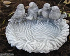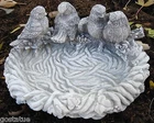 NEW latex /plastic backup 4 birds small birdbath mold plaster concrete. Special order mold takes 10 days to make from date of payment This is a NEW latex with plastic backup mold … Elegant bird birdbath / bird feeder mold works great with a plastic backup..makes a birdbath that measures apx 9"W x 7"D x 3.5"H.Too cute to pass up! Will cast 100 and more times!