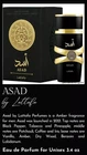 Lattafa Perfumes Asad Eau de Parfum for Unisex is a bold and captivating fragrance with a rich vanilla base, designed for those who enjoy warm and sophisticated scents. This 3.4-ounce spray offers a long-lasting scent, making it ideal for daily wear or special occasions. The fragrance opens with an intriguing mix of spicy and fruity top notes, featuring Black Pepper, Pineapple, and a touch of smoky Tobacco. The heart introduces a deep and aromatic blend of Coffee, earthy Patchouli, and powdery Iris, adding complexity and warmth. The scent finishes with a creamy and resinous base of Amber, Vanilla, Dry Woods, Benzoin, and Labdanum, leaving a memorable and comforting trail. Notes: Top: Black Pepper, Pineapple, Tobacco Middle: Coffee, Patchouli, Iris Base: Amber, Vanilla, Dry Woods, Benzoin, Labdanum