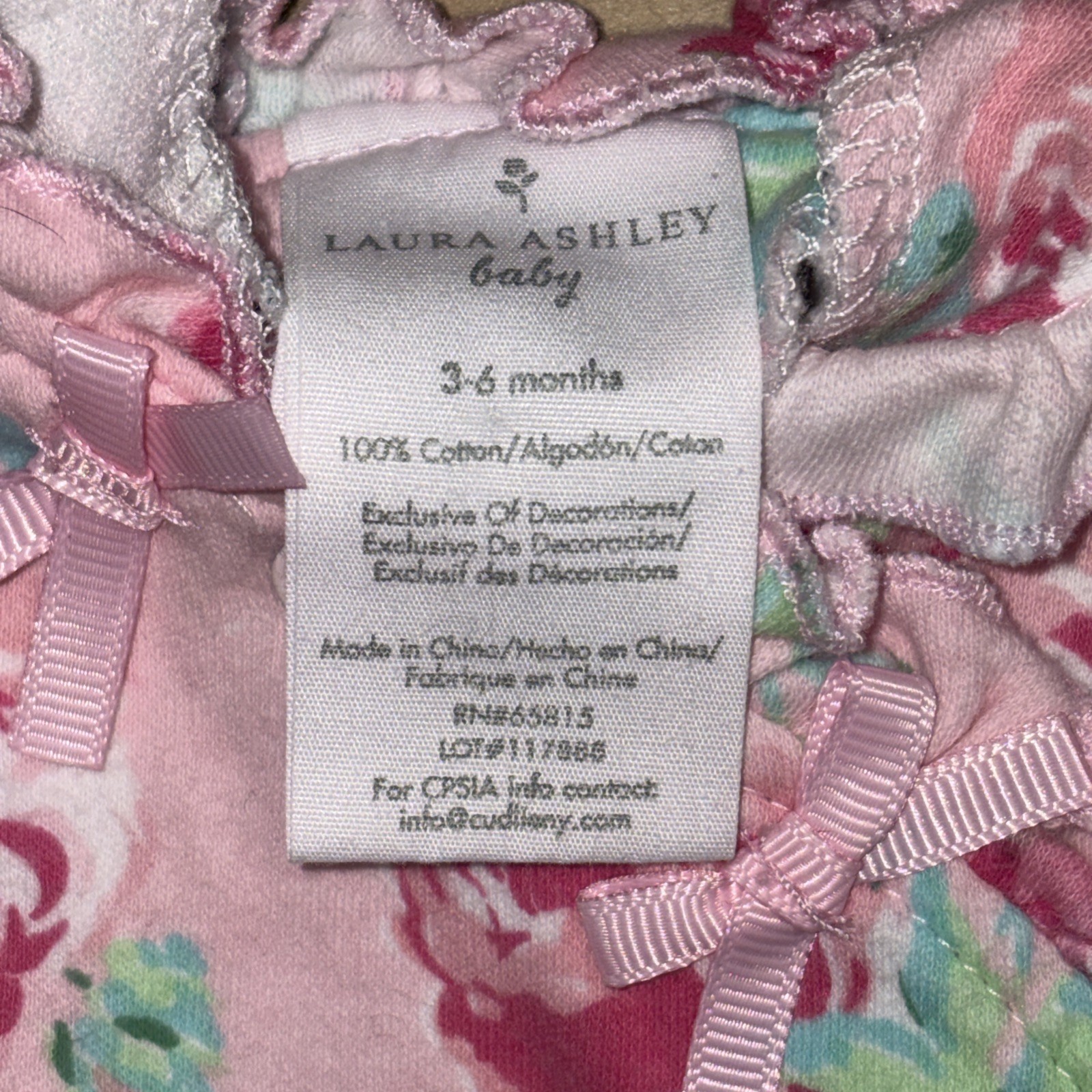 Size: 3-6 Months Number of Pieces: 1 Piece Fabric Type: Knit Vintage: No Department: Girls Material: 100% Cotton, 100% Pima Cotton Handmade: No Style: Sleeper Type: One-Piece Country of Origin: China Pattern: Floral Sleeve Length: Long Sleeve Features: Snaps Personalize: No Character: Baby Girl Brand: Laura Ashley Color: Pink Theme: Flower Occasion: Casual Performance/Activity: Sleep Accents: Bow Set Includes: Bodysuit Closure: Snap Season: Fall, Spring, Summer, Winter Neckline: Crew Neck Garment Care: Machine Washable Character Family: One Piece