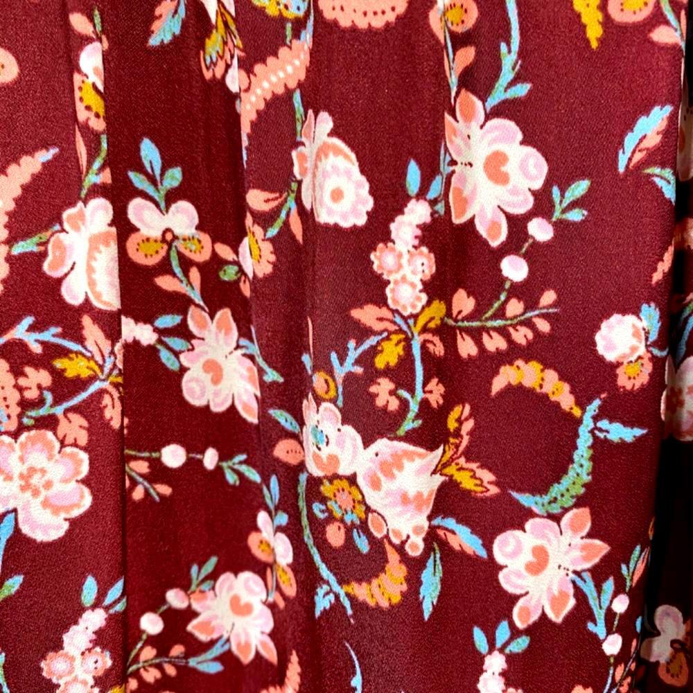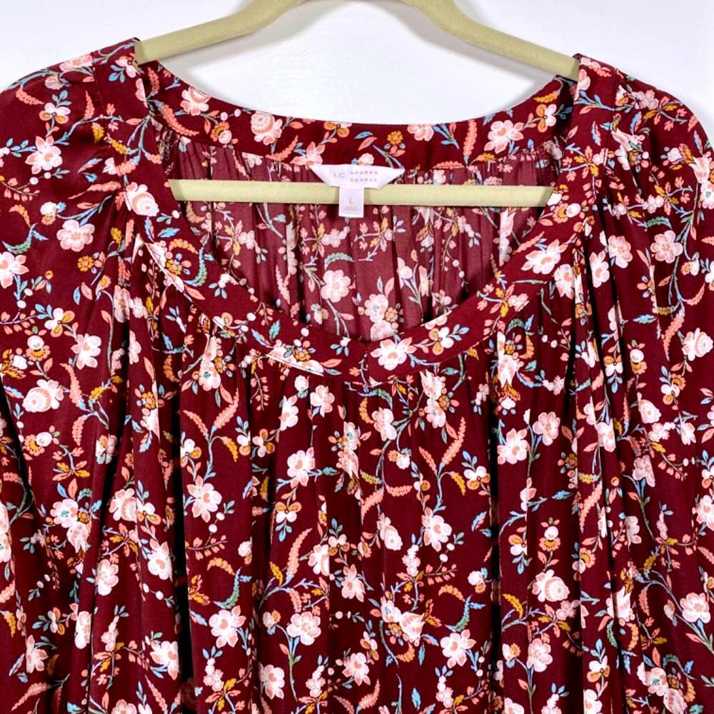 This long sleeve floral print blouse by Lauren Conrad showcases an elegant burgundy fabric adorned with a vibrant floral pattern and a comfortable, draped fit. BRAND: Lauren Conrad CONDITION: Excellent Used US SIZE: Large | Chest 22" Sleeve 21" Length 24.5" COLOR: Burgundy, cream, rust, turqoise MATERIAL: 100% Polyester FEATURES/ACCENTS: - A flattering square neckline that complements various body types - Beautiful long sleeves with cinched cuffs for added sophistication - A relaxed fit, great for all-day wear - Pairs with jeans or skirts for a chic look no matter where you're headed ABOUT ME: I accept reasonable offers. Same or next day shipping. Questions? I’m always here to help with sizing, styling, or other inquiries. Thanks for stopping by! Have a great day. 😻ClosetKitty23 Bohemian, Boho, Botanical, Cottagecore, Fairytale, Fantasy, Feminine, Floral, Flower,