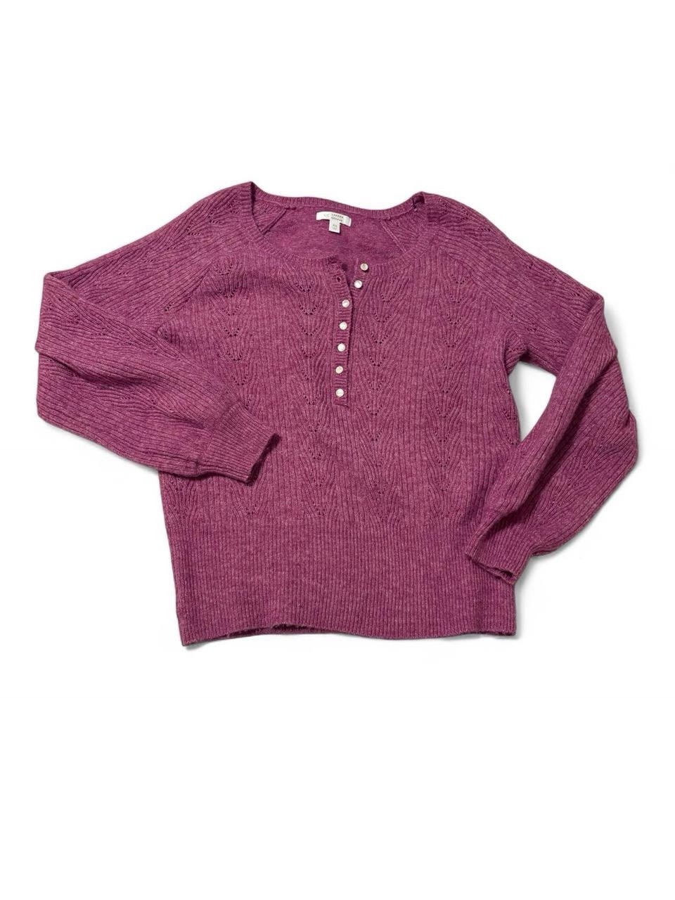 The Lauren Conrad Women's Light Purple Button-Up Sweater in size extra small is a stylish and versatile addition to any wardrobe. Made from a knit fabric, this solid color sweater features long sleeves, a pullover style, and button accents for a classic look. Perfect for casual occasions during the winter, fall, or spring seasons, this sweater is machine washable and easy to care for. With its regular fit and stylish design, this sweater is sure to become a staple piece in any woman's closet.