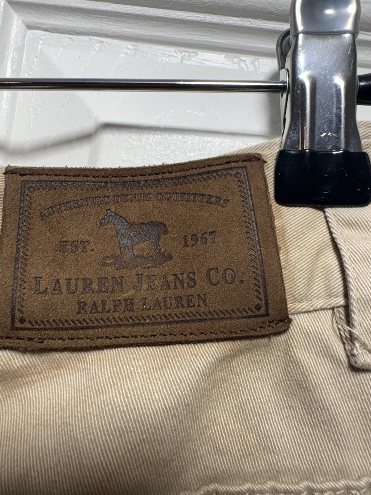 Classic Lauren Jeans Co. by Ralph Lauren khaki chino pants in a timeless straight leg fit. Made from durable cotton twill with a comfortable mid rise and everyday neutral tone — perfect for casual wear, work, or minimalist wardrobes. Features: • Lauren Jeans Co. Ralph Lauren • Straight leg relaxed fit • Mid rise • Classic 5-pocket style • Tan/khaki color • Heavy cotton twill fabric Condition: Preowned in good condition with normal light wear.