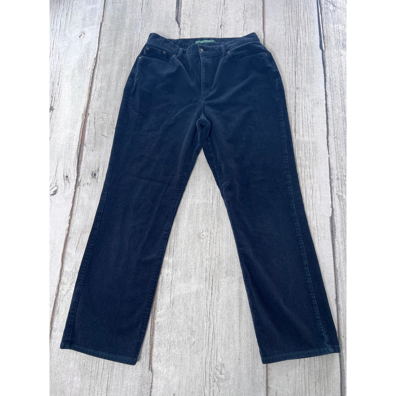 Discover timeless style with these classic Lauren Jeans Co. navy corduroy pants. The rich texture of the corduroy adds a sophisticated touch to any outfit, while the straight leg silhouette offers a flattering and versatile fit. Perfect for dressing up for a casual dinner or keeping it comfortable for everyday wear, these pants are a wardrobe essential. Style: Khakis Department: Women Material: Cotton, Elastane Leg Style: Straight Type: Pants Fabric Type: Corduroy Features: Stretch, Pockets Closure: Button, Zip, Pull On Pattern: Solid Accents: Logo, Button Occasion: Casual, Workwear Waist Size: 30 in Fit: Regular Rise: Mid (8.5-10.5 in) Front Type: Flat Front Keywords: corduroy, navy, straight leg, classic, women's, ralph lauren jeans, fall fashion, winter wear, casual, everyday, comfortable, textured, versatile