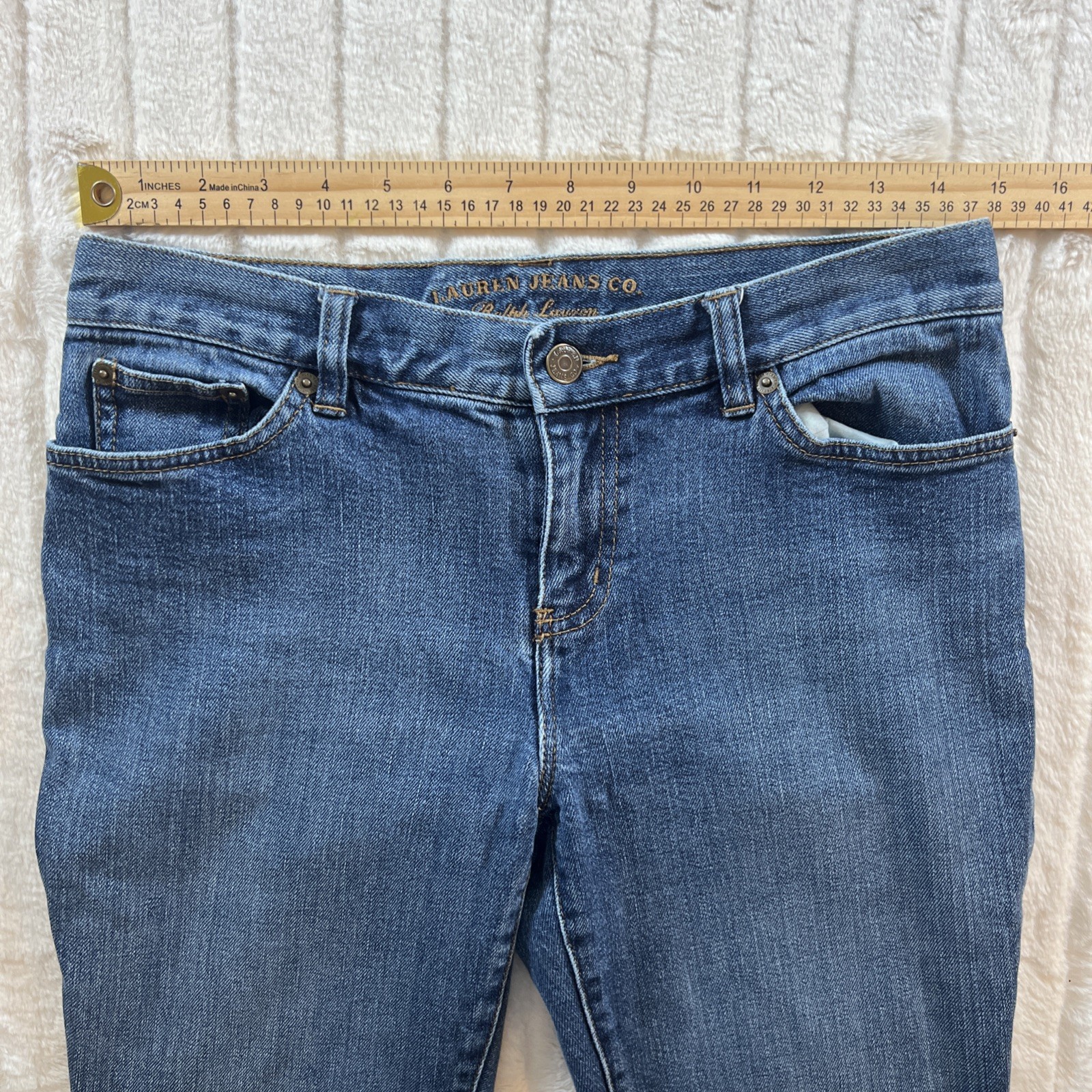 These Lauren Jeans Co Ralph Lauren Women Blue Denim Straight Leg Jeans in size 4 are a classic addition to any wardrobe. Made from a comfortable and stretchy cotton blend with a mid-rise waist, these jeans feature a 5-pocket design, including a slash and coin pocket for added convenience. The timeless solid blue color and Ralph Lauren logo accents make these jeans versatile for any season, while the 30-inch inseam and regular fit ensure a comfortable and flattering look. Easy to care for with machine washable instructions, these jeans are perfect for everyday wear.