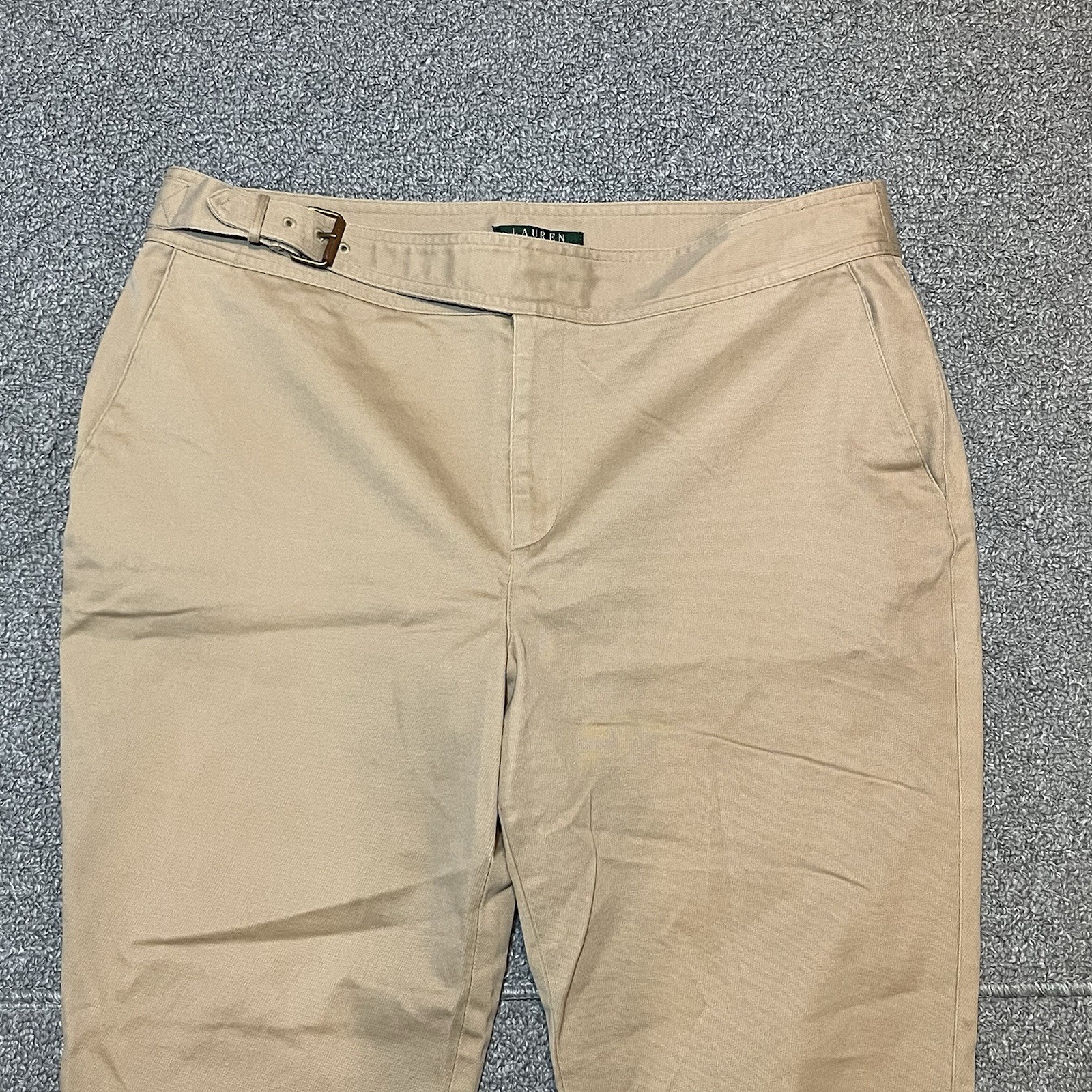 Lauren Ralph Lauren Belted Pants Womens Size 14 Beige High Rise Straight Leg See measurements for accurate fit Waist 17.5 inches across Inseam 27 inches Rise 11 inches All measurements are done flat lay