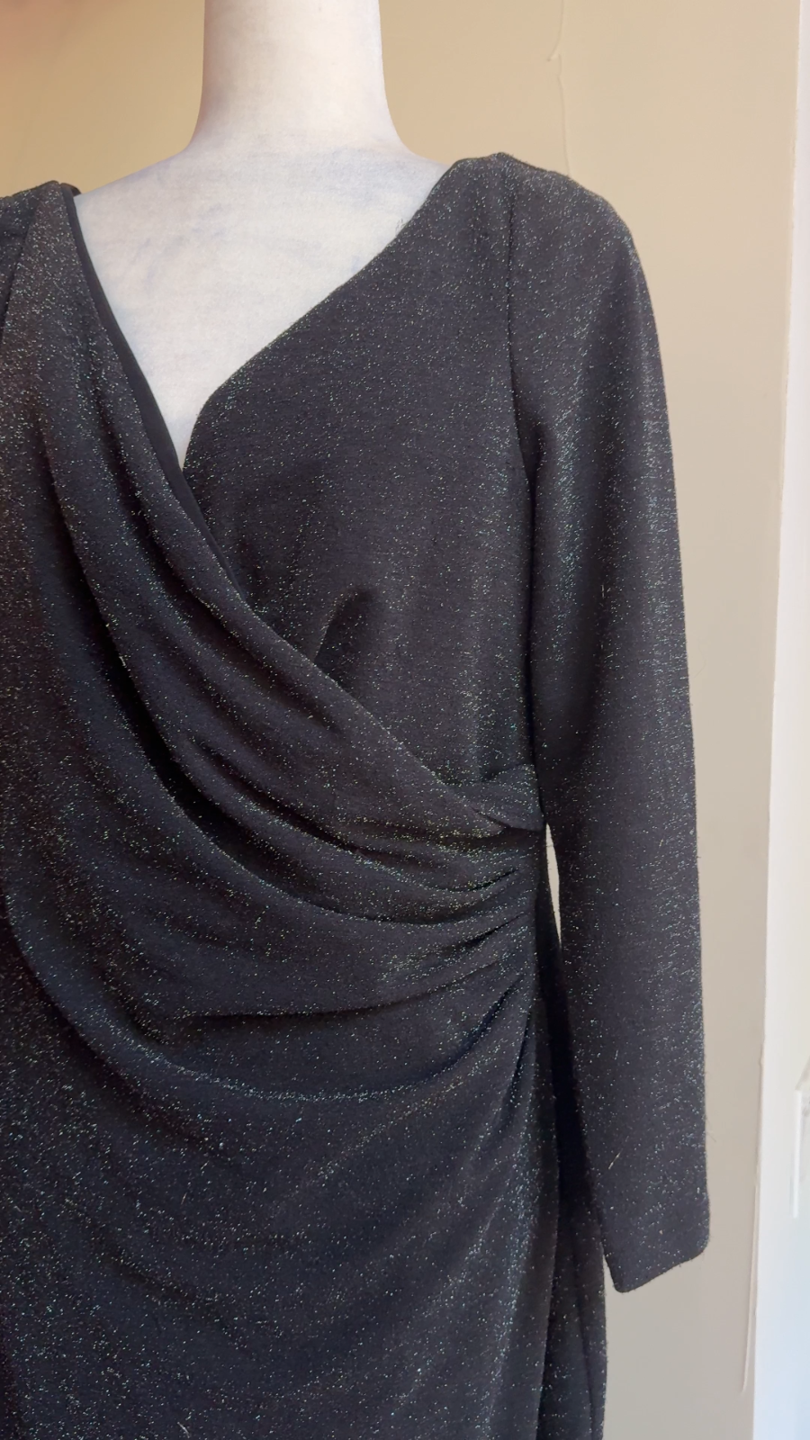 Lauren by Ralph Black Sparkle V Neck Long Sleeve Knit Womens Size 14 Cocktail Condition is pre-owned ~ view photos ~ no visible flaws Color: Black with Silver Metallic threads woven through for a shimmer effect Size: 14 **Please see all pictures for full item condition and details.** **Please feel free to message me with questions or additional item photo requests** Tags: cocktail | evening | party | festive | shimmer OS157 Payment: All payments are handled through eBay payments. I do not accept any other form of payment. Taxes and fees will be applied at checkout and collected by eBay. Returns: If you decide you do not want the item, please contact me within 30 days of receiving your item(s). Items must be returned in their original condition (no signs of wear, CLEAN, with tags and packaging attached or intact, if applicable). Once I receive your item in its original condition, I will issue a refund for the cost of the item. If item is not returned in its original condition or if the item has signs of wear, I will deduct the appropriate amount for cleaning, repair, or replacement. International Returns are handled through Ebay. Business Policies: Buyer is responsible for the collection of package after tracking shows delivery. I will offer refunds for packages lost by USPS, but I will NOT offer refunds if USPS tracking shows delivery to the buyer.