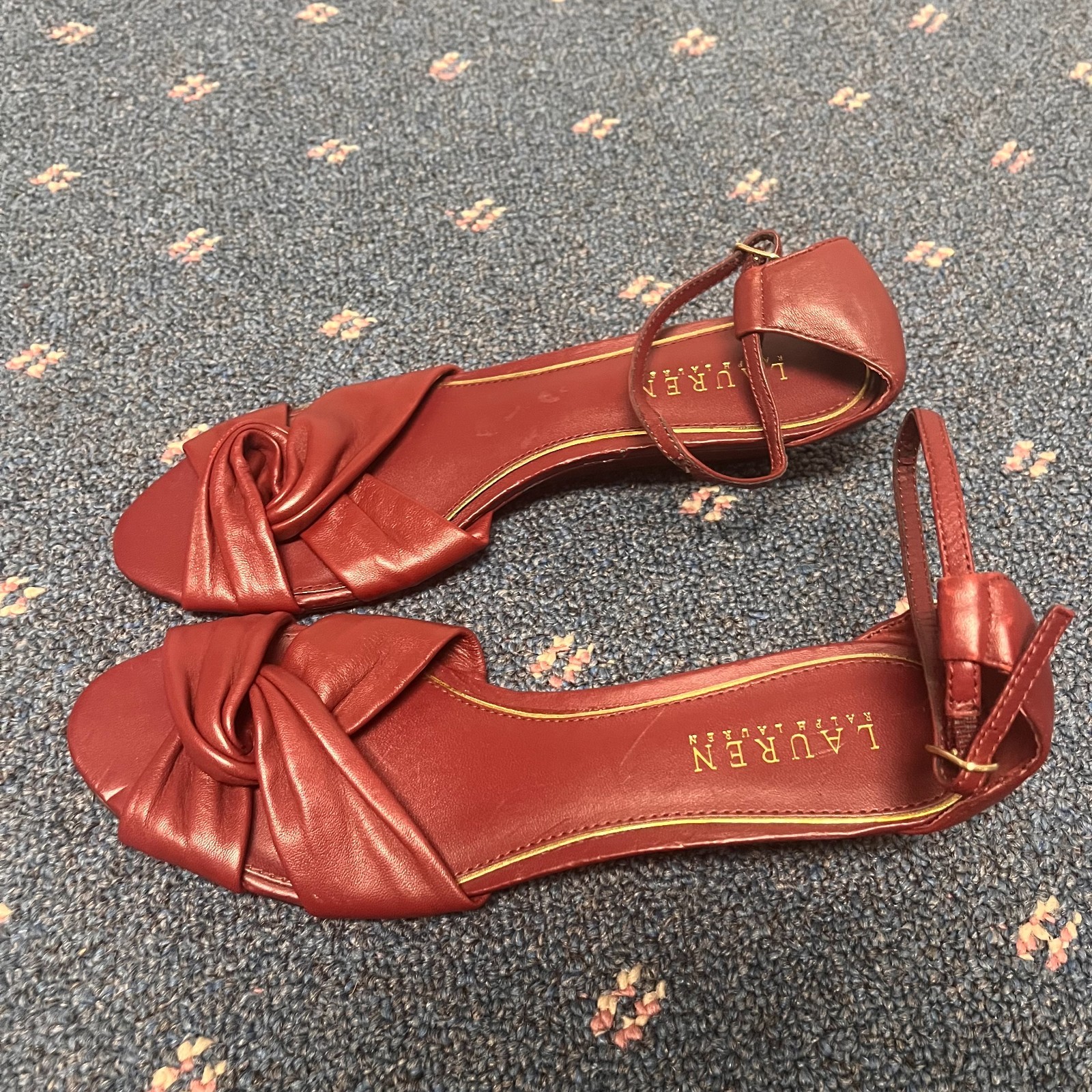 The Lauren Ralph Lauren Mireya Sandal in Burgundy Leather is a stylish and versatile option for women looking for a low wedge sandal with an ankle strap closure. This sandal features a solid color with a buckle accent and a comfortable leather lining and insole. Perfect for a variety of occasions including travel, parties, casual outings, and business events, this fashionable sandal is both practical and chic. The adjustable ankle strap and rubber outsole provide added comfort and stability, making it a great choice for the summer, fall, and spring seasons.