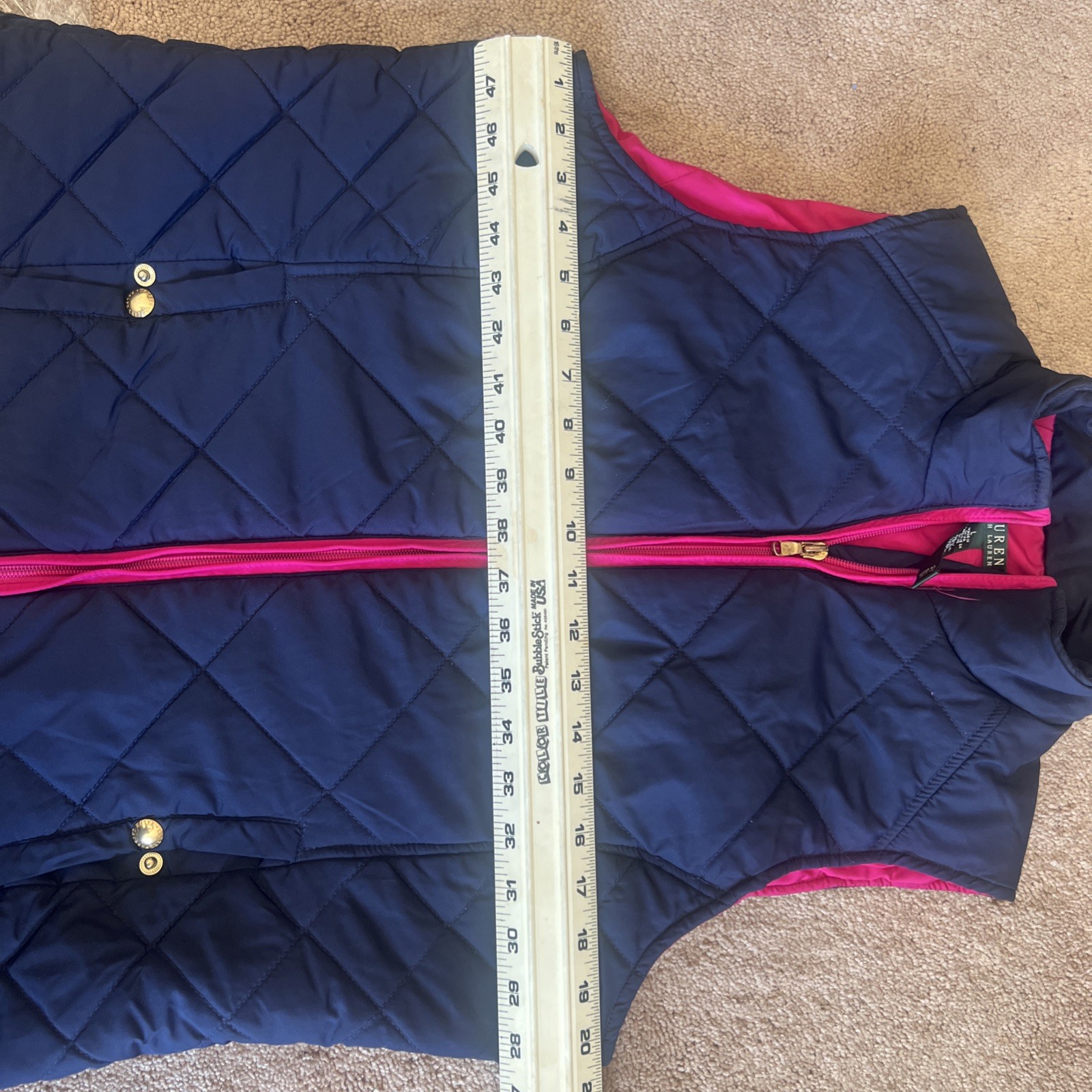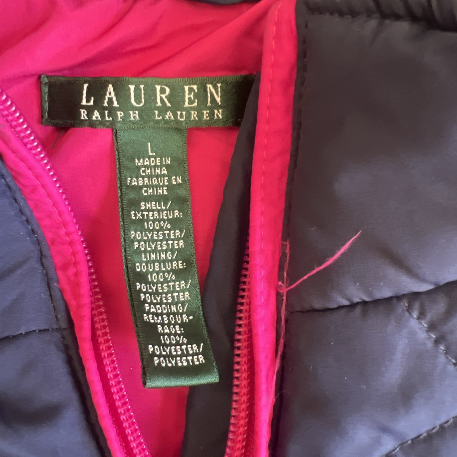 Lauren Ralph Lauren Puffer Quilted Vest Women L Blue Full Zip Side Pocket Casual. Condition is Pre-owned - Excellent. Shipped with USPS Ground Advantage.