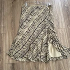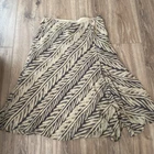 This Lauren Ralph Lauren Midi Skirt features a stylish ruffle flair design in a tan and dark gray color scheme, crafted from a luxurious combination of silk and linen materials. The skirt is in a size M with a pull-on closure and a mid-rise fit, suitable for various occasions such as travel, casual outings, workwear, or business settings. It is fully lined and easy to care. Perfect for all seasons, this skirt exudes a blend of bohemian and city-inspired charm with a hint of southwestern influence. Excellent preowned condition, like new.
