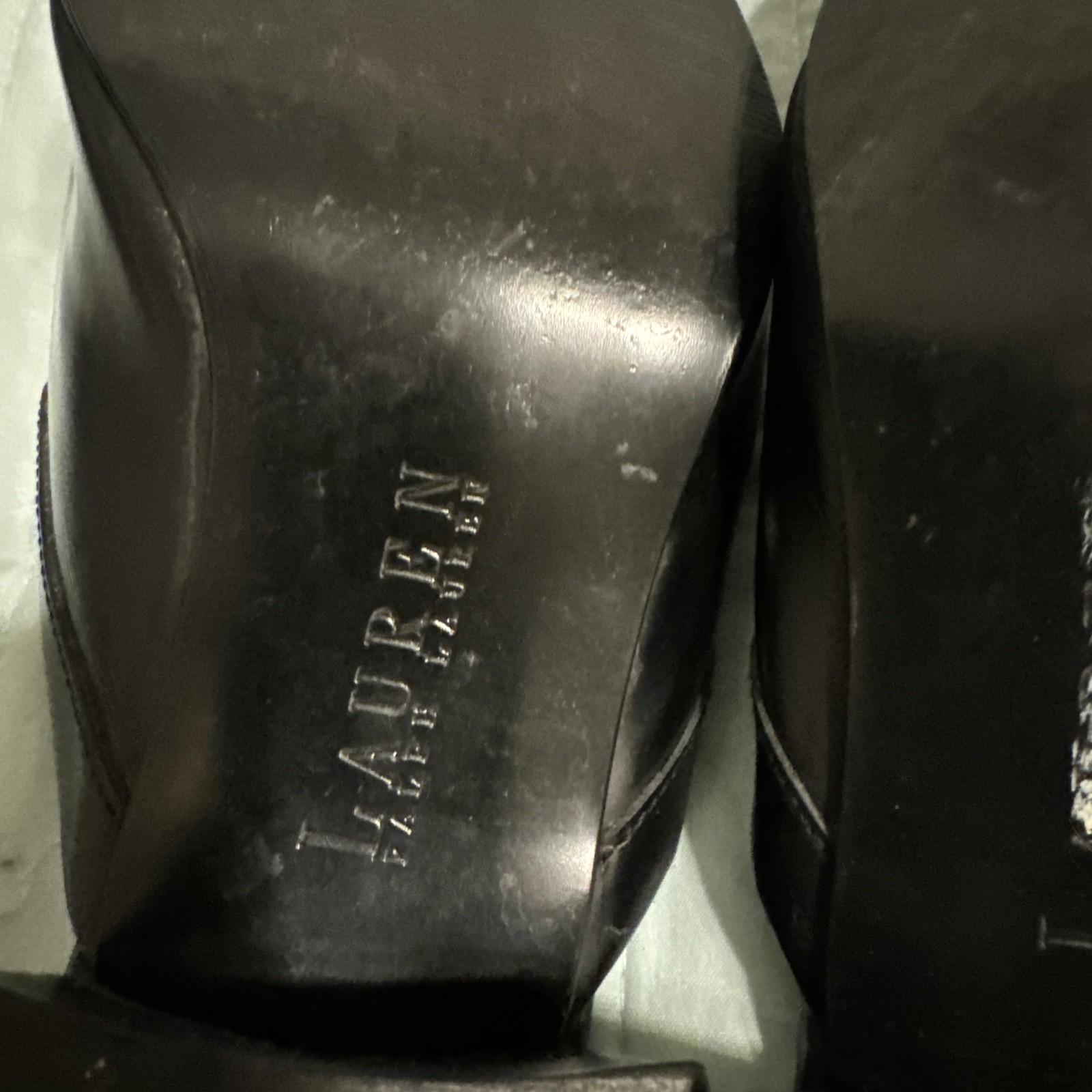 The Lauren Ralph Lauren Slip On Dress Shoe Mule in size 10 is a stylish and comfortable option for women looking for a casual footwear choice. Made of black leather with a flat design, this slip-on shoe is perfect for the summer, fall, and spring seasons. The slip-on style and B shoe width make it easy to wear and versatile for various occasions. With the renowned brand of Lauren Ralph Lauren, these shoes combine fashion and functionality for a chic look.