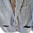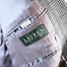 100% wool Lauren ralph lauren macys mens store double button closure 4 button sleeves. Houndstooth checkered with a nice touch of blue stitching and shades of grey. Suit jacket is in excellent clean condition no holes or tears. Sz 48 long measures flat 19.5" across shoulders 25" pit to pit 35" Length 26" sleeves