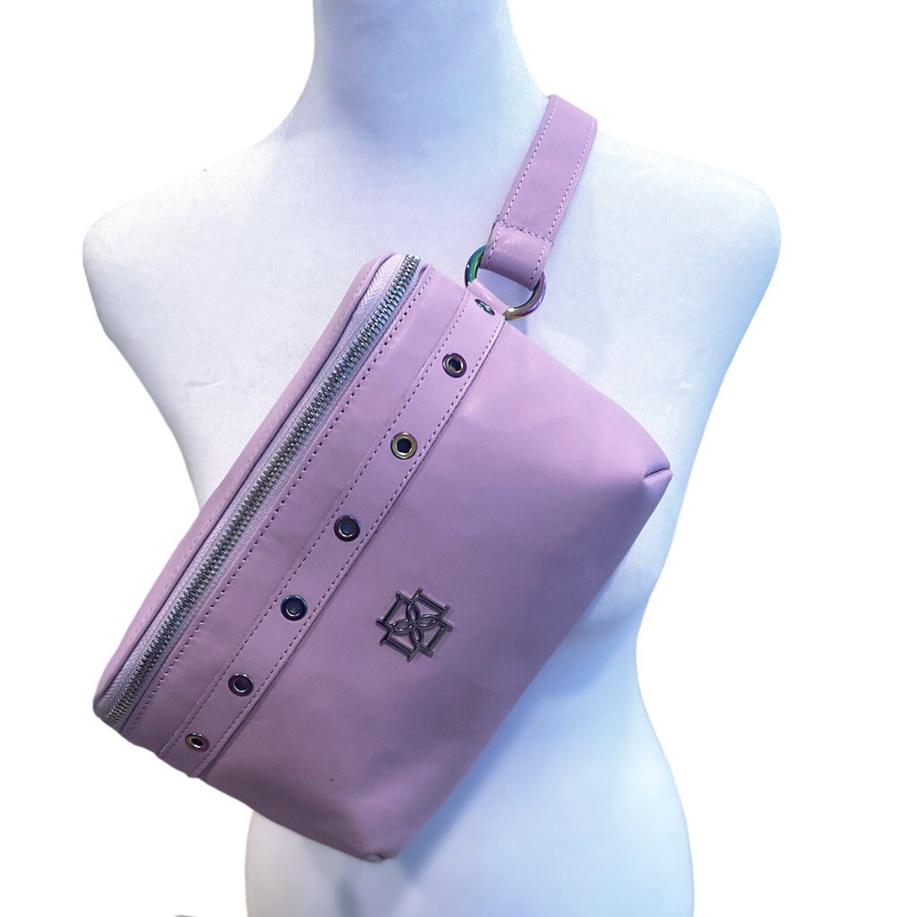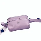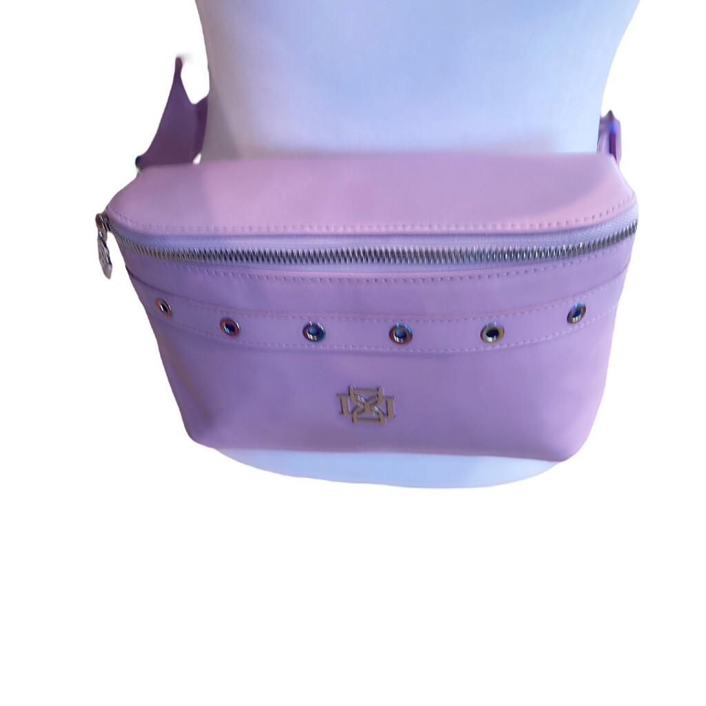 Dominie Lavender The Capri Luxury Belt Bag Crossbody New. Great bag especially this time of year for walks dog park camping concerts festivals the gramits and buckle on the strap are like an irredesint metal Strap 39” and adjustable Zip closure one back slip pocket on the outside One pocket on the inside Roomy but not to big Lining is a light green silky material Leather MSRP 229