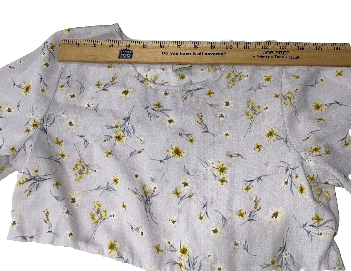 This adorable top is in excellent used condition. Color is lavender with yellow floral accents. Please review all pictures prior to purchasing. Thank you!