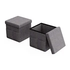 Bring the best of style and function to your home with the Ottoman with Storage for Living Room Set of 2 by Lavish Home. Each small ottoman features clean modern lines, a premium linen-look polyester outer cover that is easy to clean with a damp cloth, and ample foam padding for seating comfort. This storage ottoman cube set is constructed from sturdy MDF materials to give each one a 330-pound weight capacity as a seat and 30-pound capacity as a storage piece. The collapsible design makes them easy to set up in seconds, and they can be folded flat when not in use for compact storage. This square ottoman set is an excellent option for organizing your living room, family room, dorm, RV, or apartment. IMPORTANT: Lavish Home is committed to providing the consumer with the absolute best price and value on all of our products. NOTE: This is an exclusive product of Lavish Home and ONLY Ottomans for Living Room by Lavish Home are GUARANTEED to be genuine. Avoid buying counterfeit products and transacting with unauthorized sellers. STORAGE OTTOMAN SET OF 2 - The collapsible design of this pair of foot stools makes it easy to set up cozy, padded seating in seconds. They can also be folded flat when not in use so you can store them under your bed or in a closet. VERSATILE USE - This foot stool set is great for propping up your feet while watching tv or as extra seating for guests. The 2 outside pockets on each foot rest keep essentials within easy reach, and the spacious interior can double as bedroom storage. STURDY COMFORT - The body and lid are constructed from sturdy MDF materials, which allows each ottoman foot rest to hold up to 330lbs as a seat and 30lbs as a storage cube. The padded lid of each ottoman provides a comfortable seating experience. STYLISH DÉCOR - This ottoman with storage set features a premium linen-look polyester outer cover that is easy to clean with a damp cloth. The modern, clean lines bring chic function to your home with hidden living room storage. PRODUCT DETAILS - Materials: Polyester, Poly Suede, Foam, and MDF. Dimensions: (L) 15” x (W) 15” x (H) 15”; Folded: (L) 15” x (W) 15” x (H) 2.6”. Seating Capacity: 330lbs; Interior Capacity: 30lbs. Foot Rest Ottoman Set of 2. Color: Charcoal Gray.