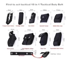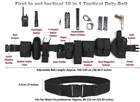Versatile modular design for Law Enforcement, Military Personnel, Security and Sport Enthusiasts Complete tactical set with all the pouches and holsters required by tactical teams. Adjustable law enforcement duty belt with quick release buckle, belt keepers, pager/cell phone/gloves case, key holder, chemical agent/pepper spray case/ snap closure, dual magazine pouches with horizontal/ vertical secure systems, universal radio case, handcuff case/snap closure, expandable baton case, flashlight case, and fully adjustable duty holster with extra mag pouch. Quick attachment with complete Locking and fully adjustable 2" Wide belt can be adjusted from 35" to 45". 10 in 1 security belt/ game belt, one 2" Wide belt with 9 component / pouches. Adjustable 35-45 inches. Modular versatile design for police, security, tactical law enforcement and sport enthusiasts. All inclusive tactical modular duty belt. Secure but quick release buckle.