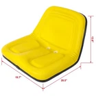 Lawn Mower Garden Tractor Seat Yellow For John Deere 318 322 330 332 400 420 430 Description: Low back replacement seat featuring high density foam cushion, heavy duty vinyl (Yellow), steel pan and drain hole. Comes with multiple bolt hole configurations. Features: High Density Foam Cushion Steel Pan Heavy Duty Vinyl (Yellow) Drain Hole Accepts Operator Presence Switch Application: John Deere Mowers: STX30, STX38, 130, 160, 165, 170, 175, 180, 185, 110, & 112 AFTER 1968, 120, 140, 208, 210, 212, 214, 216, 300, 312, 314, 317, 316, 318, 322, 330, 332, 400, 420, 430. John Deere Skid Steers: 60, 375, 570, 575, 3375, 4475, 5575 Replaces John Deere Number: GG420-32959, MG861683 Dimensions: Basic Dimensions: Seat Height: 14" Seat Length: 20" Seat Width: 20"