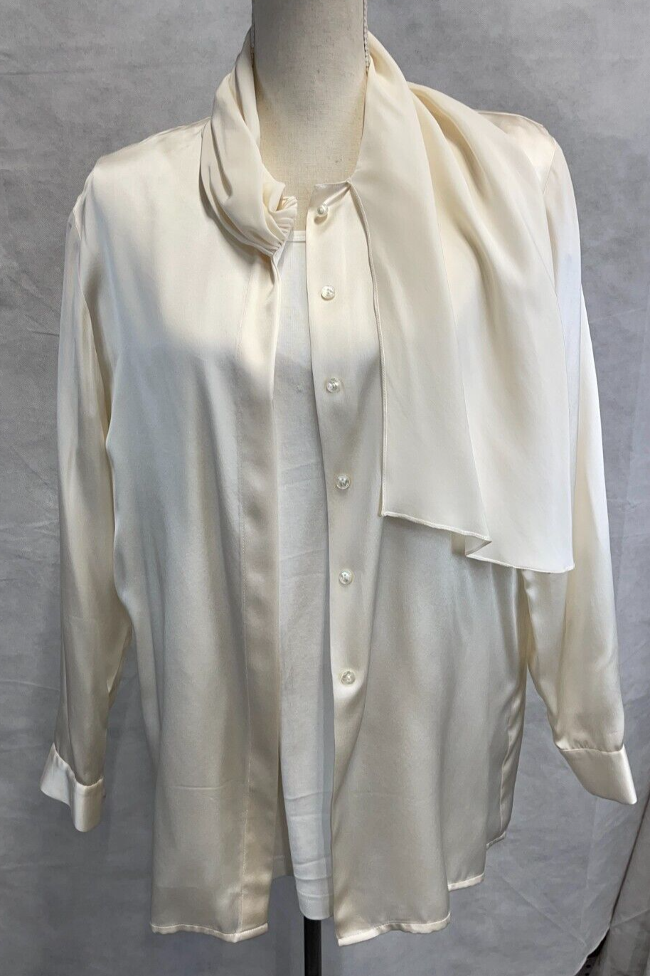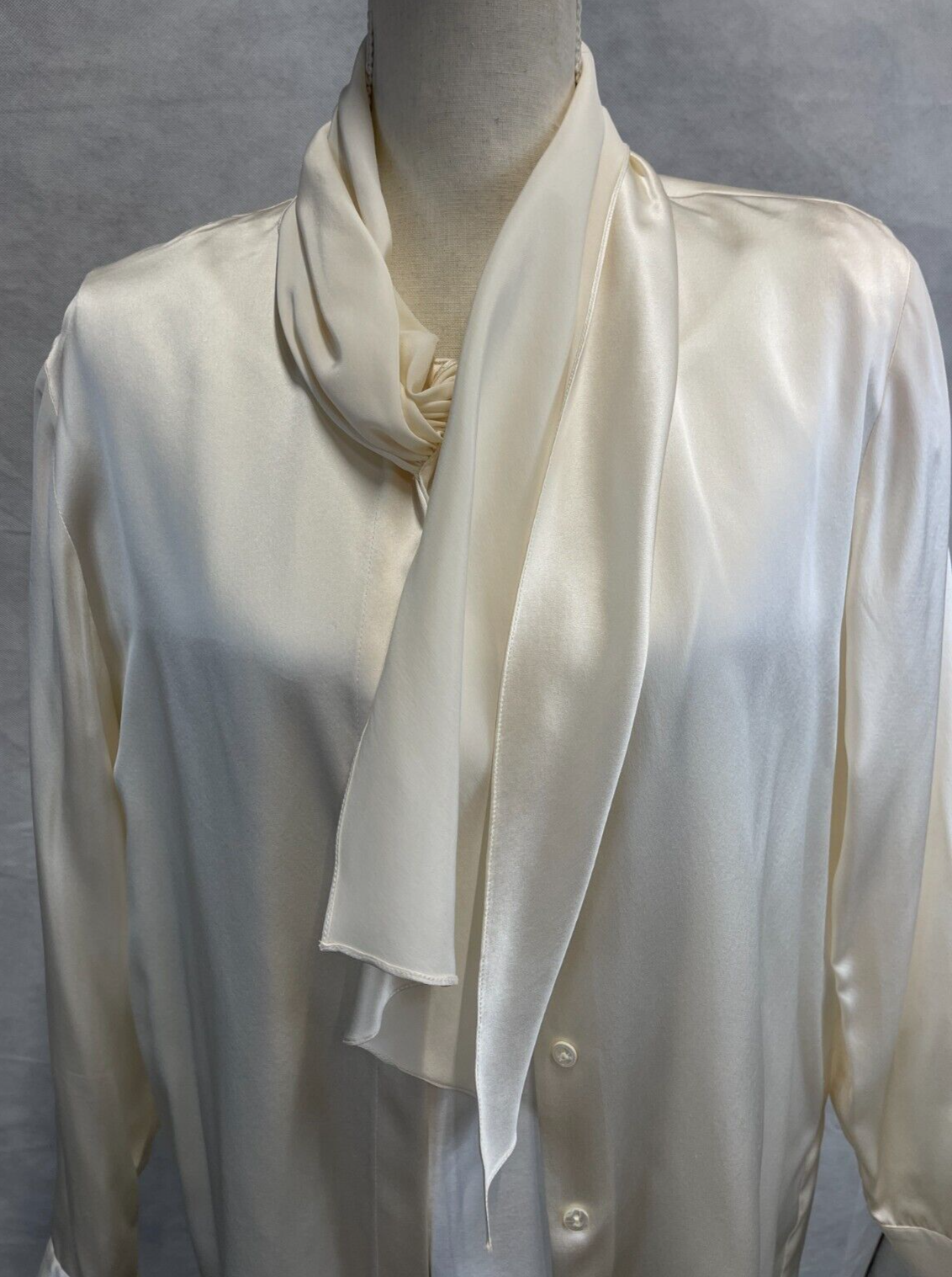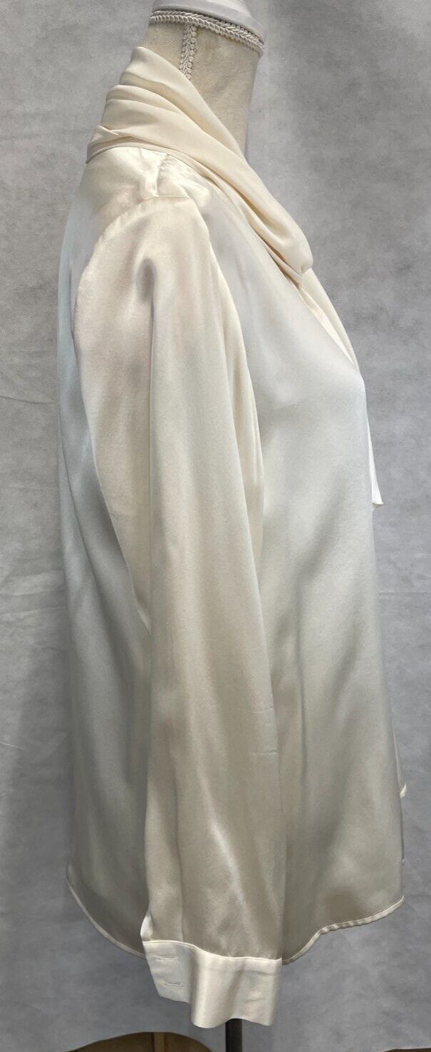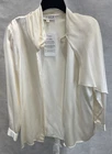 Women’s Layla Mitra Cream Silk Blouse with Scarf Detail Size 8 Brand: Layla Mitra. Overall Condition: Excellent. See pictures for details. Material: Silk. Shipped with USPS Priority or Flat Rate, or if possible First Class Mail. Add a touch of luxury and sophistication to your wardrobe with this Layla Mitra cream silk blouse. Designed with a beautiful cowl scarf detail, a refined collar, and buttons all down the front, this blouse offers a perfect blend of elegance and versatility. Crafted from pure silk, it drapes beautifully and feels soft against the skin. Ideal for both professional and formal occasions as well as being lightweight, breathable, and incredibly soft for all-day comfort. Details for Shopper Shoulder: 17 inches Sleeve: 23 inches Bust: 21 inches Waist: 21 inches Length: 25 inches in the front, 28.5 inches in the back. Payment Policies We accept payment through PayPal, credit card, and debit card. Please note that the item may be relisted if payment is not received within the 10 day period. Shipping Policies Delivery estimates will be displayed at checkout. In-store pickup is also available if you would like to visit us in store. We ship to Continental United States only. Terms of Sale Each item we sell is unique. There are no exchanges for the same item available. All items are carefully inspected by My Sister’s Closet of Monroe County’s quality control team prior to shipping. Please carefully review item details. If you have questions, please message us regarding the item before purchasing. Note: Due to the different monitor and light effects, the actual color of the item shown might be slightly different from the color in pictures. Return Policy We strive to describe and measure our items accurately. If your order is not what you expected, we accept returns under the following conditions: The item was not as described as listed The wrong item was shipped. The item does not fit. If the wrong item was shipped, we will attempt to replace it with the item originally ordered. Please note - items not returned in the exact same condition, with tags attached, may be subject to a partial refund to account for loss of the item’s value. Please refer to eBay Return policy for more details. You are covered by the eBay Money Back Guarantee if you receive an item that is not described as listed. Return Requirements: The buyer must return the item within 30 days of receipt. Buyer is responsible for return shipping charges. The item(s) must be returned in the original condition, unworn, with tags attached. Thank you for shopping with us! A little bit more about us… My Sister’s Closet is a nonprofit serving women in poverty since 1998. Our mission is to help women move closer to economic self-sufficiency by providing essential career development tools. This includes job training, mentoring, advocacy services, and professional attire for job interviews to help them find employment. We have helped over 2800 women thus far. Most clients we serve have been dealing with homelessness, domestic violence, illness, divorce, job loss, economic recovery and/or lack basic education. Visit Our eBay Store