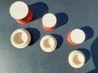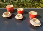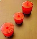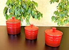 Keep your kitchen -- or table -- organized and stylish with this Le Creuset 3 piece set of small canisters. The set includes a large jar (6" tall, 5" in diameter) and two small jars (each 4.5" tall, 4" in diameter), each lidded with a knob handle. The stoneware material and airtight lids make these canisters perfect for storing food items and keeping them fresh. Not only are they practical, but they also add a pop of color with their vibrant heritage red glaze. These canisters are easy to clean and dishwasher safe. They are multipurpose and are refrigerator/freezer to microwave safe, making them a versatile addition to your kitchen. They will definately enhance your decor. Please also take a look at two other items listed under darcysthisandthat for additional Le Creuset pieces in matching glaze/color.