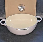 WHAT YOU GET============== A brand new, never used Le Creuset (does not come with original box) 7.5 QT 32 CM Shallot Signature Enameled Cast Iron Chef's Oven. ABOUT THIS ITEM=============== From Le Creuset, this Chef's Oven features: The generous size and depth of the Signature Chef’s Oven make this the ideal vessel for soups, pastas, braising and even baking. Sloped sides increase the efficiency and effectiveness of stirring by promoting continuous movement even with the lid in place, and the depth provides ample room for simmering. The exceptional heat distribution and retention of enameled cast iron locks in flavor, while large loop handles are designed for easy lifting and provide a steady grip when transferring a full pot from stove to oven to table. Durable and easy to clean, the colorful enameled surface requires no pre-seasoning and minimizes sticking and staining. Enameled cast iron delivers superior heat distribution and retentionReady to use, requires no seasoningEasy-to-clean and durable enamel resists dulling, staining, chipping and crackingLight-colored smooth interior enamel allows easy monitoring of cooking progressTight-fitting lid is specially designed to circulate steam and return moisture back to the foodErgonomic knobs and handles are designed for easy liftingLightest weight cast iron by quart on the marketCompatible with all cooktops and oven-safe up to 500°Safe for dishwasherMeasures approx. : 13.3"W x 7" tall x 16.5" diameterCapacity 7.5-quart