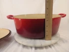 The Le Creuset Oval Dutch Oven #29 Signature is a high-quality kitchen essential that offers durability and versatility. Made of cast iron with a stylish enamel coating in cerise red, this Dutch oven is designed to be used on induction, electric, and gas stoves. It has a 5 qt capacity, perfect for cooking large meals, and comes with a matching lid to keep your food fresh. With heat resistance up to 500 ° F, this Dutch oven is a reliable choice that will last for years to come. Thank you for visiting my listing today and thank you for your interest in this item! My goal is to have a pleasant transaction resulting in a satisfied customer. I hope any transaction between us leaves you with a feeling of confidence knowing you can trust me and the items I offer here. *Most if not all my listings are set to accept offers. Feel free to send an offer and I will be happy to consider it!! *Please contact me with any questions or concerns and I will be happy to help. *Always examine the photos carefully, and if in doubt, email me with any questions you may have. *Please note that condition statements are offered as a guide only. They will always be somewhat subjective and reflect our opinion, which may not necessarily agree with someone else's opinion. PLEASE READ: I aim to please and I want my buyers to have a positive transaction with me. If you have questions, concerns, or special requests related to any of my items I hope you will contact me so we can work them out to your satisfaction. I sell my items to give you a great item at a decent price while making a little profit at the same time. If you feel the item you are interested in is too pricey do not hesitate to send me a fair offer and I will consider it. My goal is to satisfy your needs and mine so both parties can benefit. SHIPPING: If you prefer a different shipping method or company please contact me and I will do all I can to make that happen. If you have concerns or requests about the packaging of your item contact me and I will do all I can to accommodate them. Shipping costs are based on location in each state or country, the costs always differ. After I have received your payment I will ship your item out within 3 business days or less excluding weekends and holidays. BEFORE PURCHASING & BIDDING: **Please see all the pictures. I do not have great photography skills but I try to get the most accurate photos I can. If you are unsure about something you see in a photo contact me so I can do what I am able to answer your concern about the item. **I cannot stress enough that if you have any questions or concerns please contact me before purchasing and bidding. Communication can solve so much. **As a customer myself, I understand the meaning of customer satisfaction and my goal is to have nothing but satisfied customers. If you are not unsatisfied with your purchase I ask that you please contact me so I can take care of your issue. My goal is for you to be 100% satisfied. INTERNATIONAL BUYERS WELCOMED - PLEASE NOTE: I welcome International buyers! Please be aware that any custom/duties/taxes that the parcel might incur once it is out of the USA are the responsibility of the buyer. Please check with your country's customs office to determine what these additional costs will be prior to bidding or buying. Please refer to the eBay Site Map for more information if needed.