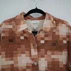 This shirt brings the nostalgia of old-school video games right to your wardrobe. With its pixelated plaid design, it's like wearing a retro game level on your chest. Perfect for those who want to look stylish while secretly battling imaginary pixel monsters. • Button-up front for easy wear • Long sleeves with buttoned cuffs • Comfortable fit • Classic collar design Features: • retro, normcore, casual, streetwear, preppy, nostalgic, school, work, errands, festivals, artsy, concert, nwt Size: Womens M Measurements: Length from center back 25.5 in / 65 cm Bust, flat lay 23.5 in / 60 cm Sleeve from neck line 30 in / 76 cm Sleeve from shoulder seam 21 in / 53 cm Condition: New With Tags New with tags, see photos for details.