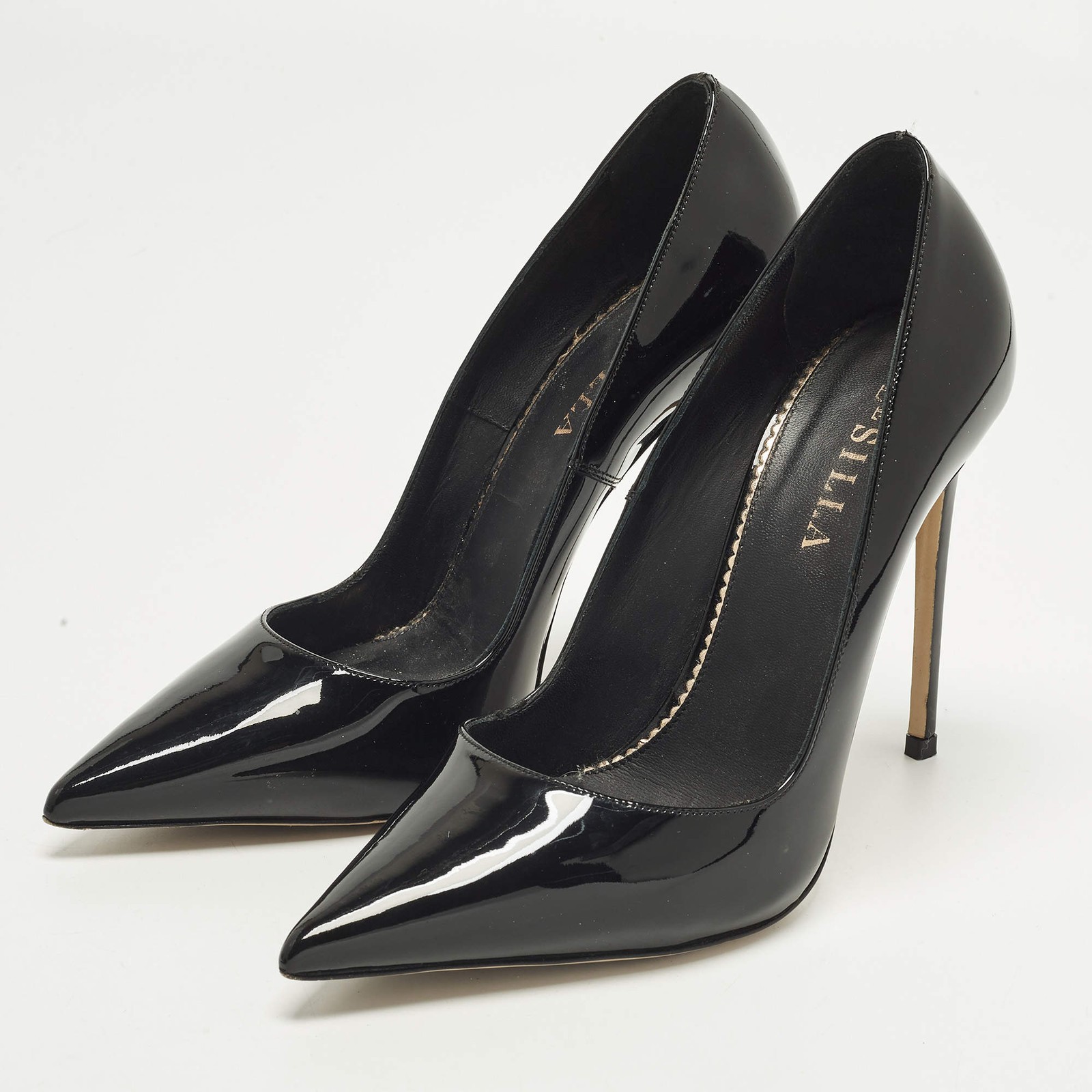 Our eBay Store About Us Contact Us Add to Favorite Sellers Le Silla Eva Size 37.5 Black Patent Leather Pointed Toe Pumps High shine patent leather shapes the Eva pumps from Le Silla in black. The pointed toe silhouette sharpens the profile, making them ideal for formal events. A polished heel crafted for refined evening wear. Product Details Brand Le Silla Color Black Includes The Luxury Closet Packaging Outsole Length 22.5 cm Outsole Width 7.5 cm Size 37.5 Certified by The Luxury Closet This item has gone through a detailed authentication process overseen by our experts. We offer a lifetime guarantee of authenticity on all our items. How We Check The in-house team of experts at The Luxury Closet is highly trained to verify the authenticity and the condition of the luxury products. They ensure that only 100% authentic items are put on sale.The evaluation process is unique with its own mix of assessment criteria and differs according to the category. Each item is evaluated based on the following combination of hallmarks, hardware, stitching, symmetry, material, craftsmanship, stamping, codes, hologram stickers, and packaging. Our authenticators also check if the items have been modified or amended (e.g., aftermarket diamonds, replaced batteries, repaired bags, etc.) International Buyers Import duties, taxes and charges are not included in the item price. These charges are the buyers responsibility. Please check with your country’s customs office to determine what these additional cost will be prior to buying.