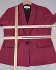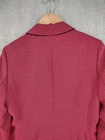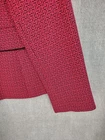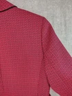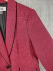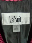 Le Suit Blazer Womens 10 Pink Black Geometric Textured Career Jacket Work Office Condition: Gently worn, no visible flaws. Excellent used condition. Main color: Pink with black geometric textured pattern and black trim piping details Features a notched lapel collar, single button front closure, and two front flap pockets with black piping Fully lined with black interior Shell: 100% polyester, Lining: 100% polyester (exclusive of decoration) Professionally tailored look, suitable for business, office, or formal occasions Marked size: 10 (Womens). Please check photos for approximate measurements. Made in Bangladesh Style code: E89MM2B5196 Dry clean only