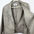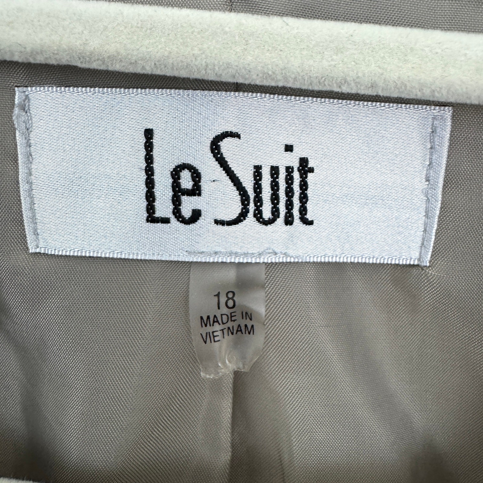 Brand: Le Suit Size: 18 Measurements: Chest- 22.5 in across, Length- 26 in, Shoulder to Shoulder- 17 in across, Arm length- 24 in Condition: In excellent pre-loved condition. No stains, holes, or tears. Any zips, buttons, or pockets, if present, work as expected. Color: tan, light brown shimmer Material: Poly (missing tag) Features: Decorative front button closure Ruffle collar Textured fabric Lined Style: office, office life, girl boss, boss babe, boss, business, professional, return to work, business casual, smart casual, career, classic, office wear, work outfit, office attire, corporate, wear to work, 9to5 style, dress for success, ruffle