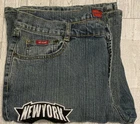 Elevate your style with these trendy Le More jeans featuring an NBA teams patch. These classic fit, medium wash jeans are perfect for any casual occasion. The straight style with logo accents adds a touch of uniqueness to your outfit. The jeans are made of high-quality fabric ensuring comfort and durability. Available in size 15, these blue jeans are a must-have for any women's wardrobe.