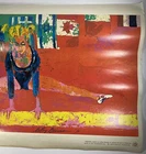 This LeROY NEIMAN poster features the 1976 Olympics USA gymnastics team and measures 14" x 23". It was produced as a promotional item for Burger King and is a reproduction of the original artwork. The poster is a vintage piece that showcases Neiman's iconic style, making it a must-have for any sports memorabilia collector. The poster was made in the United States and is a perfect addition to any collection. Has damage, wear and staining. See photos.