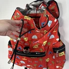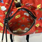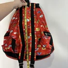 LeSportsac Backpack Drawstring Red Outdoor Palm Tree Camping Biking Nylon Adult great preowned condition red print is palm trees, rainbow, tents, camper, bikes, sun glasses Drawstring main closure Top flap with adjustable quick release closure Exterior front pocket with zipped closure Two exterior side pockets with zipped closures Adjustable shoulder straps Three interior pockets Interior zip/open pocket 22 14.7