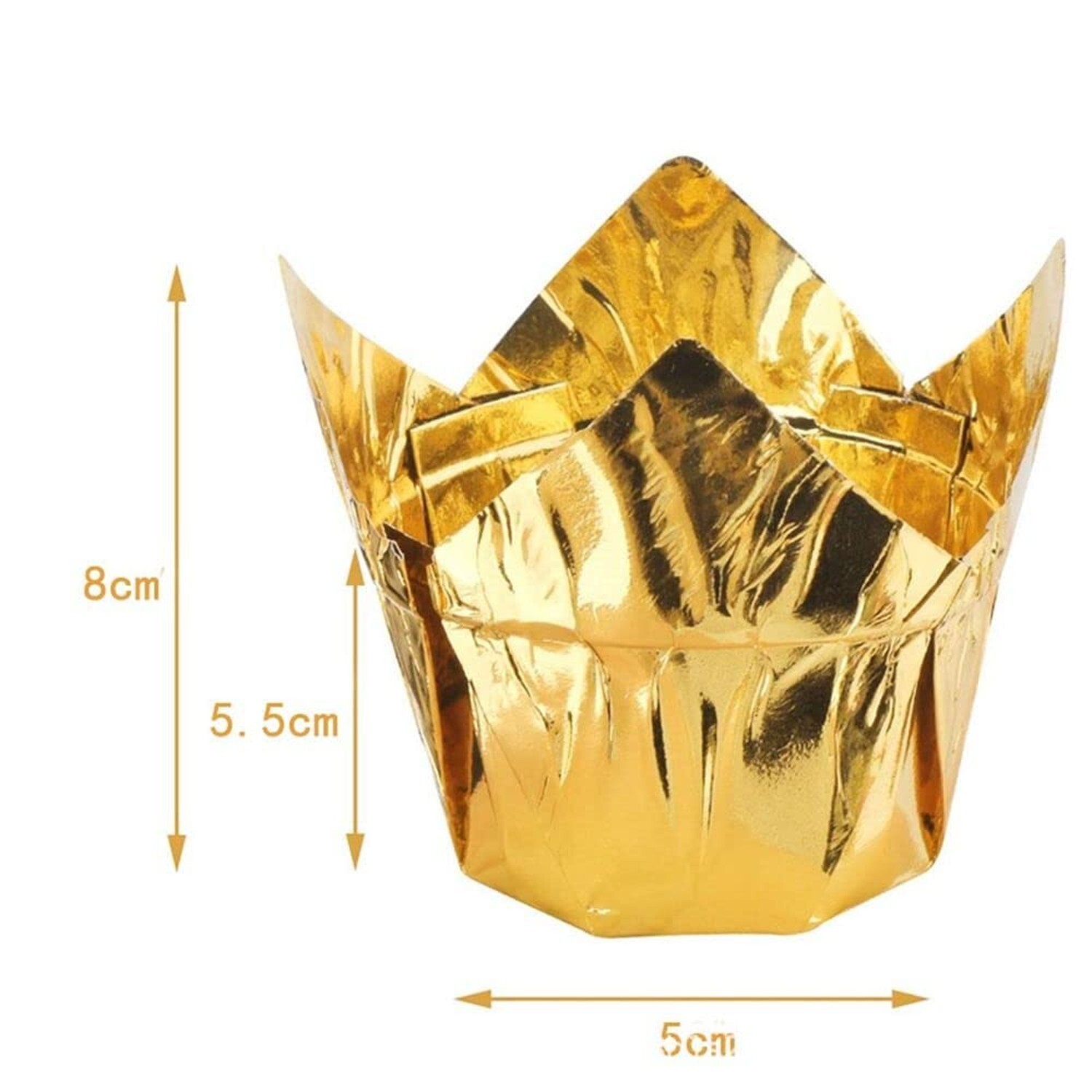 Leadigol 100PCS Tulip Cupcake Liners for Baking Muffin Aluminum Foil Paper Baking Cups Wedding Birthday Party Home Baking Tool Product Details Brand: Leadigol Material: Aluminum Reusability: Disposable Occasion: Wedding, Birthday Shape: Round Brand: Leadigol Material: Aluminum Reusability: Disposable Occasion: Wedding, Birthday Shape: Round Manufacturer: Leadigol Package Dimensions: 3 x 2 x 2 inches Item Weight: 9.2 ounces Country of Origin: China Item model number: YTMB13U76-G/DSJK2 Date First Available: October 20, 2023 These muffin cups are made of premium quality aluminum foil that make these strong and sturdy. Put them into the oven and bake them directly. Size: 50*50*80mm,compact to carry around and easy to store in kitchen or cabinet, proper for making most standard sizes cupcakes. Ideal for picnics, camping, afternoon tea, banquets, desserts, parties, gatherings, indoor and outdoor occasions, home kitchens, restaurants, bakeries and cafes. Featuring an elegant tulip flower design, these disposable tulip muffin liners will increase more romantic touch to your dessert table or dining table for weddings, holidays, birthdays, parties, anniversaries and more These tulip cupcake liners perfect for putting cake, biscuit,candy, dessert, cookie, fruit etc. Color: gold / silver / rose goldQuantity: 100pcsSize: 505080mmMaterial: Aluminum FoilPackage Included: 100pcs x Cupcake Liners