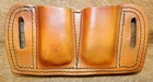 Custom Made in Montana by Gary C's Leather Leather DOUBLE MAG HOLDER Holds Two Double stack magazines 9 mm Fits Ruger SR9 and similar size mags All Leather – Custom made Antiqued Golden Brown finish cut from high quality cowhide tooling leather Fits up to 1-1/2” belt, can be modified to fit 1-3/4" belt at your request Overall size: 4 ” tall x 6-1/2 ” wide THE POUCH IN THE PICTURES IS LIKE THE ONE YOU WILL RECEIVE Each pouch is hand made and will have slight differences. NOTE: The Magazines in the picture are for illustration only, and are NOT FOR SALE. Matching Belt sold separately To visit our eBay store! and more about Gary C's Leather click on the following: About Gary C's Leather