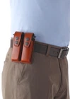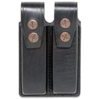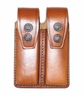 Leather Double Magazine Case Carries two magazines Fits most DOUBLE STACK 9mm or .40 metal magazines 12 to 16 rounds) holds magazines up to 4 7/8" tall x 1 1/4" wide x 3/4" thick Fits belts up to 2 1/2" wide DOES NOT FIT GLOCK MAGAZINES Genuine Cowhide Leather Flaps with snaps keep magazines securely in place Two belt loops on the back to fit belts up to 2.5" wide and 1/4" thick Inside the case dimensions : 3/4" thick, 1 3/8" wide, 3.5" deep ( max magazine length 4 3/4" for the flap to close) THERE IS NO NRA PRINT ON THIS PRODUCT, (PHOTOS ARE NOT UPDATED) Available in Brown or Black (select when ordering)