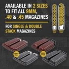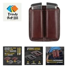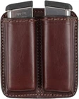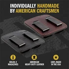 Leather Double Magazine Holder | | Sizes to fit virtually Any 9mm, 40 or .45 Caliber Pistol Mag | Single or Double Stack | IWB or OWB Mag Pouch PROUDLY HANDMADE IN THE USA! Each double magazine holster was handmade by an American craftsman. Wear inside or outside the waistband for easy concealed or open carry. Bull hide Leather breaks in like a glove and this universal mag pouch will mold to your magazine and make draw and insertion a breeze. The perfect addition to your concealed carry rig and the perfect compliment to your firearm. DOUBLE STACK 9mm/.40/.45 SIZE FITS VIRTUALLY ALL DOUBLE STACK MAGAZINES INCLUDING: Glock 17, 17L, 19, 20, 21, 22, 23, 24, 25, 26, 27, 28, 29, 30, 31, 32, 33, 34, 35, 37, 38, 39, 40 | Ruger SR9C, American, P95 | H&K VP9, VP40, P30 | S&W M&P | SD9VE | Sig Sauer P220, P226, P229, P250, P320, P320C ,SP2022 | Springfield XD, XD Sub-Compact, XDM | Taurus Millennium PT111, PT 140, 24/7, G2 | Beretta 92 and most all other double stack magazines. SINGLE STACK 9mm/.40/.45 SIZE FITS ALMOST ALL SINGLE STACK MAGAZINES INCLUDING: S&W Shield (9 mm, .40, and .45) | Glock 43 | All 1911's | Walther PPS, CCP | Taurus PT1911, PT709 | Sprinfield XDS, Operator, Loaded, EMP | Sig Sauer C3, Tacops, P290, P239, P938| Ruger SR1911 | Kimber Ultra Carry II, Tactical II Super Carry, Solo Carry, Crimson Carry and virtually any other single stack capacity mag. satisfaction, NO QUESTIONS ASKED! We say it is built to last and we back it up with a satisfaction. From the range to the field and everything in between keep your spare ammo where you want it when you need it! Carry the best CCW double mag pouch on the market for the rest of your life. This pouch is designed to give you the ultimate retention and easy access to extra ammunition in a jam all while giving you a sleek double stitched piece that is sure to be pleasing on the eyes. NOTHING BUT THE BEST MATERIALS!! We only use the best American Bullhide Leather and steel belt clips. Because we use the toughest and best quality leather on the market your double mag holder may require a small amount of break in time. Once you do this your double mag pouch will be custom molded to your spare mags for life. Proudly Made in the USA! - Always prepared, Never surrender.
