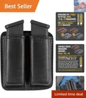 Leather Double Magazine Holder | | Sizes to fit virtually Any 9mm, 40 or .45 Caliber Pistol Mag | Single or Double Stack | IWB or OWB Mag Pouch PROUDLY HANDMADE IN THE USA! Each double magazine holster was handmade by an American craftsman. Wear inside or outside the waistband for easy concealed or open carry. Bull hide Leather breaks in like a glove and this universal mag pouch will mold to your magazine and make draw and insertion a breeze. The perfect addition to your concealed carry rig and the perfect compliment to your firearm. DOUBLE STACK 9mm/.40/.45 SIZE FITS VIRTUALLY ALL DOUBLE STACK MAGAZINES INCLUDING: Glock 17, 17L, 19, 20, 21, 22, 23, 24, 25, 26, 27, 28, 29, 30, 31, 32, 33, 34, 35, 37, 38, 39, 40 | Ruger SR9C, American, P95 | H&K VP9, VP40, P30 | S&W M&P | SD9VE | Sig Sauer P220, P226, P229, P250, P320, P320C ,SP2022 | Springfield XD, XD Sub-Compact, XDM | Taurus Millennium PT111, PT 140, 24/7, G2 | Beretta 92 and most all other double stack magazines. SINGLE STACK 9mm/.40/.45 SIZE FITS ALMOST ALL SINGLE STACK MAGAZINES INCLUDING: S&W Shield (9 mm, .40, and .45) | Glock 43 | All 1911's | Walther PPS, CCP | Taurus PT1911, PT709 | Sprinfield XDS, Operator, Loaded, EMP | Sig Sauer C3, Tacops, P290, P239, P938| Ruger SR1911 | Kimber Ultra Carry II, Tactical II Super Carry, Solo Carry, Crimson Carry and virtually any other single stack capacity mag. satisfaction, NO QUESTIONS ASKED! We say it is built to last and we back it up with a satisfaction. From the range to the field and everything in between keep your spare ammo where you want it when you need it! Carry the best CCW double mag pouch on the market for the rest of your life. This pouch is designed to give you the ultimate retention and easy access to extra ammunition in a jam all while giving you a sleek double stitched piece that is sure to be pleasing on the eyes. NOTHING BUT THE BEST MATERIALS!! We only use the best American Bullhide Leather and steel belt clips. Because we use the toughest and best quality leather on the market your double mag holder may require a small amount of break in time. Once you do this your double mag pouch will be custom molded to your spare mags for life. Proudly Made in the USA! - Always prepared, Never surrender.