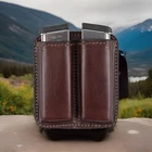 This leather magazine holder by Kosibate is a versatile accessory for your pistol. It is designed for universal gun makes and calibers, including 9mm Luger, .40 S&W, and .45 ACP. The magazine pouch features a clip and can hold up to two magazines, making it a practical choice for hunting and other outdoor activities. The magazine holder is made of high-quality leather and neoprene materials, ensuring durability and comfort. It can be carried on the ankle or inside the waistband (IWB) for added convenience. With a sleek brown color and ambidextrous design, this magazine pouch is a must-have for any pistol owner.