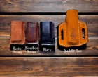 Forward canted for quick extraction. Can be used as: 1. Normal Magazine holder in 9:00 or 3:00 position. 2. Appendix or kidney carry positions. 3. Cross-draw on opposite side. 4. Small of Back draw. IMPORTANT: Order for the actual side of your body you'll be wearing this on. When you specify which side you'll wear this magazine holder on, you will typically wear it on the OPPOSITE side from your firearm, with the magazine pointing to the front, except in cases where you choose to cross-draw, then it will typically be on the same side as the firearm. IMPORTANT: Each magazine holder is fabricated when ordered, and can take up to 5 BUSINESS days to ship after purchase. The Bourbon Brown, Saddle Tan and Rustic Brown are all hand dyed and may vary be slightly lighter or darker than the pictures. This is the nature of hand dyed leather. Hand dyed leather mat have some streaking that contributes to the character of the leather. . Magazine Holder Features: Magazine holder is designed, fabricated, and shipped from Columbus Ohio, USA. Made with 8oz leather, specifically molded for each specific magazine. This magazine holder will fit belts up to 1 1/2 inch wide. Custom belt sizes are available on request. Dyed black with waterproof leather dye, and sealed with two coats of leather conditioner and acrylic sealant We use 346 mil-spec polyester thread that's virtually unbreakable. Free shipping via First Class US Postal Service to US addresses. Tracking number provided when shipped. Magazine holder was designed specifically for concealed carry, outside the waistband. If you're not completely satisfied with your magazine holder, please give us the opportunity to fix any issues before leaving negative or neutral feedback. Seriously, you need to read this.... Important information about this magazine holder: Each magazine holder is fabricated when ordered, and can take up to 5 BUSINESS days to fabricate and ship after purchase. The style or look of the spring steel belt clip can change without notice, based on supply and availability. Purchaser is solely responsible for determining the suitability of this magazine holder for their intended use, as well as determining legality with their local and state laws. This is a new leather magazine holder, specifically molded for the stated magazine size and fit. Fit could initially be tight. Break-in might be required for optimum fit and retention. Instructions for easily and correctly breaking-in are included. These are handmade leather products, there can be occasional cosmetic variations in color and stitching. Even though we cut to avoid them, there are occasionally small blemishes on the cowhide from insect bites, scars or brands. (This also occurs on big-name retail bought holsters) Bourbon Brown and Rustic Brown are hand-dyed and can occasionally be lighter or darker than what is pictured. Engraved makers mark and identification on the steel clip will occasionally change or could be omitted entirely. Purchase is for magazine holder ONLY. Pictured gun, magazine, patches, backpack and other items are for illustrative purposes only, and are NOT included. Returns Returns are handled on a case by case basis. Any custom requests are not returnable for any reason. If we make an error, we will replace the product. Any returns we might accept MUST be within 30 days of purchase, and the magazine holder, or product, must be in the same new and unused condition you received it. Buyer is responsible for return postage. We will not accept ANY returns on products, that have been intentionally "softened" , including softening by excessive bending, flexing, stretching or using liquids. We will not accept returns on any products that have been modified. Last revised: October 13,m 2024