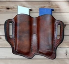 This leather magazine holder is an essential accessory for anyone who owns a 1911 and is in need of a reliable and stylish way to carry their ammunition. Designed to hold 2 1911 magazines, this handmade mag holder is perfect for those who engage in hunting or other outdoor activities. Handmade with high-quality leather, this holder is durable and long-lasting. The holder is specially designed to fit belts of 1.5" width, and it comes with belt loops that ensures the holder stays in place, even during rigorous activity. The holder is perfect for those who need to access their ammunition quickly and easily. Its design allows for easy access and quick reloading. The holder is also stylish and versatile, making it a great accessory for any outdoor enthusiast. I need a little time to make these, but can normally have them shipped out between 3-10 days.
