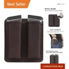 MAGAZINE HOLDER | SINGLE/DOUBLE STACK | IWB/OWB | 9MM .40 .45 OR PISTOL MAG 1* EMPTY MAGAZINE HOLDER / POUCH ONLY -Single/Double Stack -IWB/OWB -9mm .40 .45 or Pistol Mag FEATURES: * Made with durable leather for sweat-proof and skin-friendly use. * Linen inside for maximum magazine protection. * Concealment and sturdy clip for easy and secure belt attachment. * Easy and quick draw with open top design. * Universal fit for most single stack 9mm/.40/.45 magazines. * Compatible with various popular pistol models. * guarantee with lifetime warranty and 100% satisfaction service. BENEFITS: * Durable and comfortable to wear. * Provides maximum protection for your magazines. * Easy to attach and conceal on your belt. * Facilitates quick draws and reloads. * Fits a wide range of single stack magazines. * Compatible with popular pistol models. * Backed by a lifetime warranty and excellent customer service.