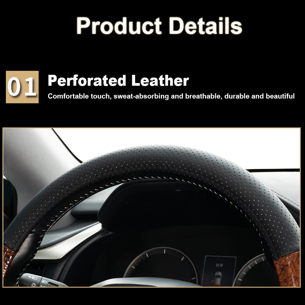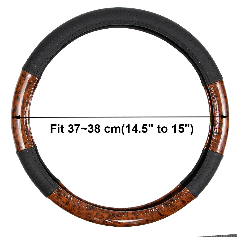 Features: --Anti-slip rubber inner ring & perforated leather. --Wood Grain Design. --More suitable for the original steering wheel. --Four Seasons Universal . --Feel comfortable, anti-skid and wear-resistant. --A perfect coat for your steering wheel . Specifications: Size: 38cm(15inch) Fitment: for Steering Wheels with an Outer Diameter of 37~38 cm(14.5" to 15") Color: Wood Grain Material: Wood Grain PVC & Faux Leather Package contents: 1 x Steering Wheel Cover