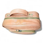 This leather backpack is a stylish and versatile accessory suitable for various occasions, including travel, workwear, and business settings. The bag has a solid brown color, with a canvas fabric type, and a large size measuring 11 inches in width, 5 inches in depth, and 16 inches in height. It features a zip-around closure, slide closure, and an adjustable shoulder strap for comfort and convenience. The bag also has a laptop sleeve/protection, making it perfect for students or professionals on-the-go. The brass hardware material and personalization instructions make it a unique and personalized accessory. This handmade Balenciaga City Bag model is a vintage piece manufactured in Pakistan between 2020-2029.