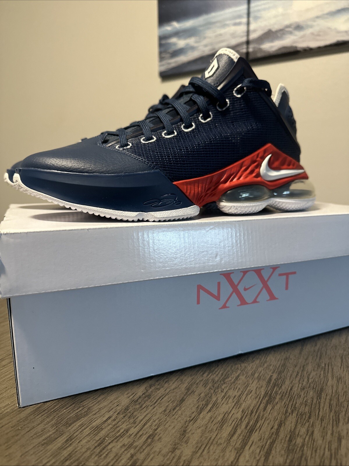 This Nike Zoom LeBron NXXT Gen sneaker is a must-have for any basketball or gym enthusiast. Featuring a mid-top shoe shaft style and a standard shoe width, this athletic shoe is designed for comfort and performance. The cushioned and breathable features make it perfect for intense workouts and games. The sneaker comes in a vibrant, multicolor design with a retro sports theme, making it a stylish addition to any athlete's collection. The shoe is a size 8.5 US and 41 EU, and is part of the Nike LeBron James product line. It is suitable for any occasion, whether it's for gym and training or basketball. Get your hands on this Nike Zoom LeBron NXXT Gen NCAA Duquesne Away sneaker and elevate your game today!
