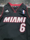 Nice and clean 8/19 condition This is a youth-sized (size small, 8) black adidas NBA basketball jersey featuring the number 23 for LeBron James of the Miami Heat. The jersey is officially licensed by the National Basketball Association (NBA) and is suitable for both boys and girls. It is a product specifically designed for fans of LeBron James and the Miami Heat, making it ideal for supporting the team during events like the NBA Finals.