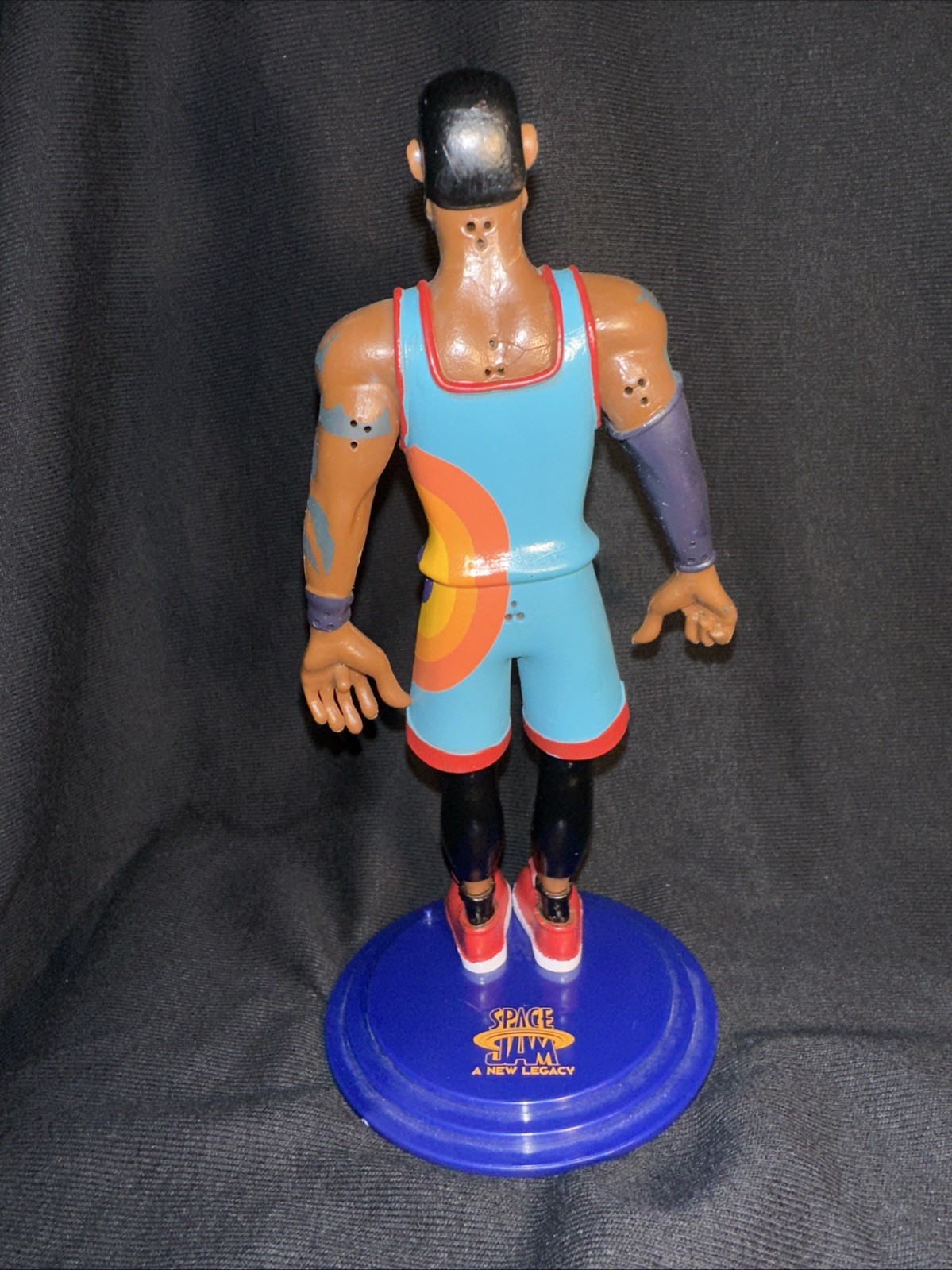 TV Show:Space Jam LegacyVehicle Type:ShipSigned:NoSport:BasketballConvention/Event:Cardiff Independent Comic ExpoFranchise:Space JamAnimation Studio:Warner Bros. AnimationScale:1:12Character:Lebron JamesMovie:Space Jam A New LegacyBrand:The Noble Collection ToysItem Height:7 inPersonalize:NoVintage:NoOriginal/Licensed Reproduction:OriginalType:Action FigureMaterial:Plastic, RubberTheme:TV, Movie & Video GamesColor:MulticolorAge Level:7 and upMPN:NN9586Features:BoxedFeatured Person/Artist:LeBron JamesItems Included:Basketball (Ball)Year Manufactured:2021Time Period Manufactured:2020-NowCountry of Origin:China