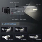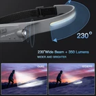 230° Wide Beam & 350 Lumens: Different from the traditional headlamp, our camping headlamps have a 230° lighting range that can reach a distance of 100 square meters around you. With 350 Lumens output that can be clearly seen even from 150ft away, enough to deal with all the darkness. Wave Induction & 5 Lighting Modes: With the side wave induction sensor, you can easily turn on/off the headlamp. and press the power switch to cycle through 5 lighting modes. Rechargeable Headlamp & Long Lasting: Built-in 1200mAh high-capacity battery that can be charged by USB cable(included) up to 8 hours of continuous use. Charging time: within 2.5h fully charged. Lightweight & IPX4 Waterproof: Only 2.4 ounces, the ultralight design will make you forget you're wearing it. Professional IPX4 level waterproof function, no need to worry about rains or snow. Perfect for camping, hiking, cycling, fishing, or car repairing.