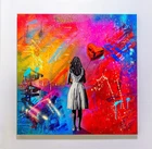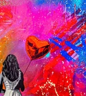 Lee Henderson - If I Gave You My Heart , Original Acrylic Painting A stunning original acrylic painting by Lee Henderson (1979) , titled “If I Gave You My Heart” . This artwork is a vibrant reinterpretation or response to Banksy’s iconic Girl with Balloon . With its bold, multicolored abstract background and emotional depth, Henderson captures themes of love, vulnerability, and hope in his distinctive contemporary style. • Object: Painting • Technique: Acrylic on canvas • Dimensions: 61 × 61 × 3 cm • Year of Production: 2023 • Signature: Hand-signed by the artist • Condition: New • Framing: Sold unframed Details: In this piece, Henderson reimagines the timeless motif of a girl holding a balloon, presenting a red heart-shaped balloon against a dynamic and colorful backdrop. The textured canvas and graffiti-inspired splashes of color bring an urban, raw energy to this painting, making it a standout piece for collectors of modern and street art. This original painting is a one-of-a-kind work, perfect for anyone looking to add a bold and emotional statement piece to their collection. It will be securely packaged to ensure safe transportation.