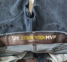 Lee Jeans Men's 35x32 Lot of 3 Regular Fit Extreme Motion Blemished. Measurements provided in photos are approximate. The second pair has a stain on the right leg.