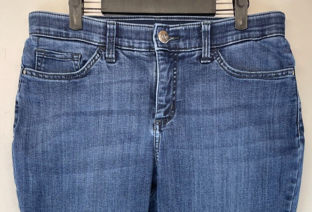 Lee Jeans in size 12 Short for women, with a regular fit and mid-rise. Made of denim with a flex motion feature for ease of movement. The straight leg style comes in a solid medium wash blue color. It has a 5-pocket design with button accents and a logo detail. The fabric is a blend of polyester, spandex, and cotton, offering stretch and easy care. Suitable for summer, fall, and spring wear. Very good preowned condition with normal preowned wear. Please see all photos; specifically for measurements. For clothing specifically, see photos for all measurements and/or any issues if applicable. Pay close attention to the measurements as the size of the garment may quite possibly be different than the actual measurement(s) due to washing, shrinkage, or stretching as these are used clothes. The size in the title is the size on the tag of the garment. See photos for measurements of actual measurements as they may differ. ALWAYS CHECK THE MEASUREMENTS IN THE PHOTOS. This will remove any questions on measurements as well as always cover the possibility of human error in the listing(s) in the case of a typo or oversight. All clothing and shoes have been washed/cleaned, and are cleaned and stored in a smoke free environment. However, please keep in mind that these are preowned items and there is always a possibility of there being preowned dirt, dust, or stray hairs present. I do my best to clean these items with hair collecting products in the dryer after being washed, and by hand with shoes. If shoe trees appear in the photos, they are for photography purposes only to illustrate how the shoes look filled out, and are not included. I am available for questions. I accept or negotiate reasonable offers. Have an amazing day. Thank you.